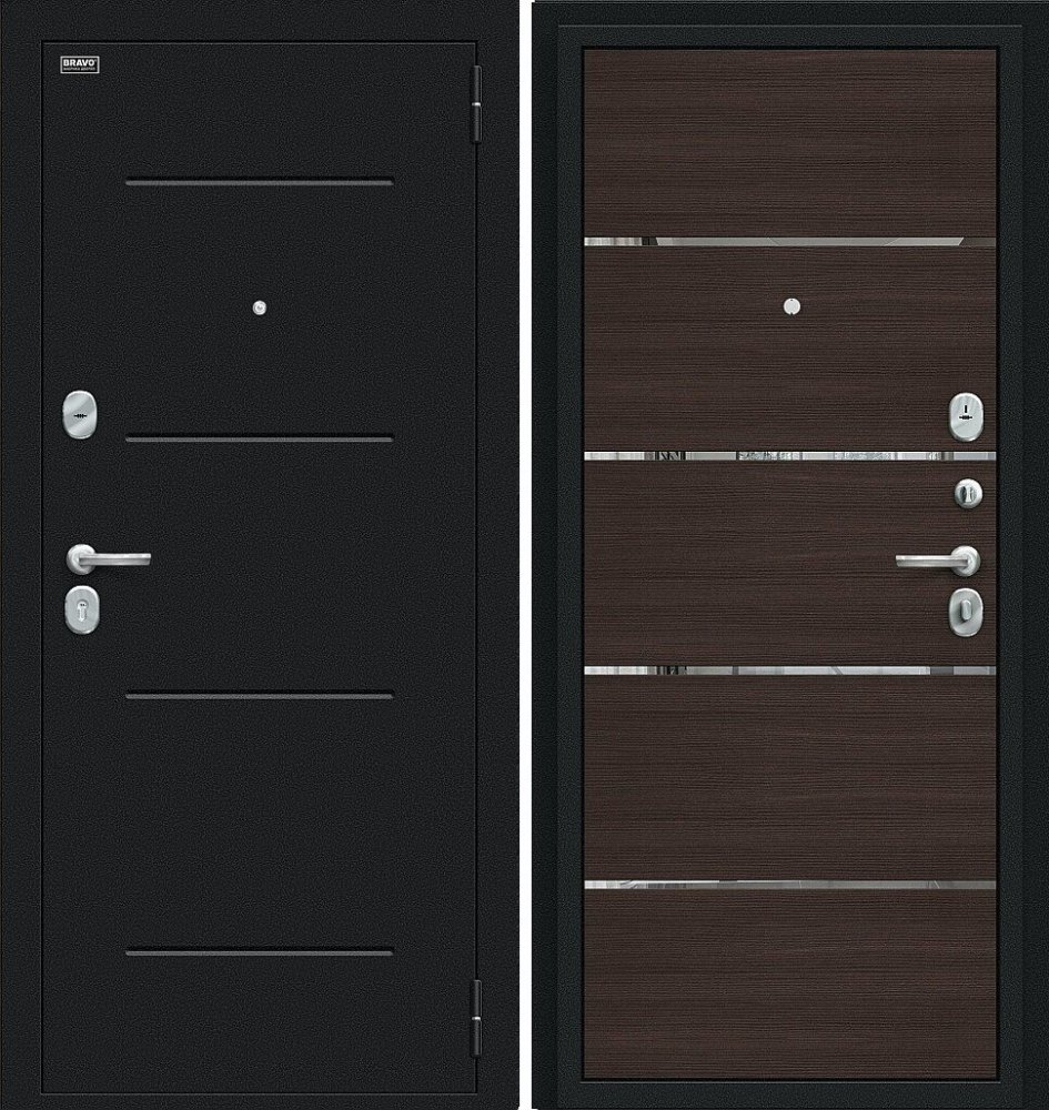 Надежная входная Дверь Браво Лайн Букле черное/Wenge Veralinga премиум класса по цене 32 174 руб. Большая толщина стали защитит от проникновения в ваш дом, квартиру или коттедж. Используется очень качественная фурнитура: замки, цилиндры, ручки, защелки. Покрытие и отделка двери изготовлено под внимательным контролем производителя. Дверь имеет долгий срок службы и гарантию.