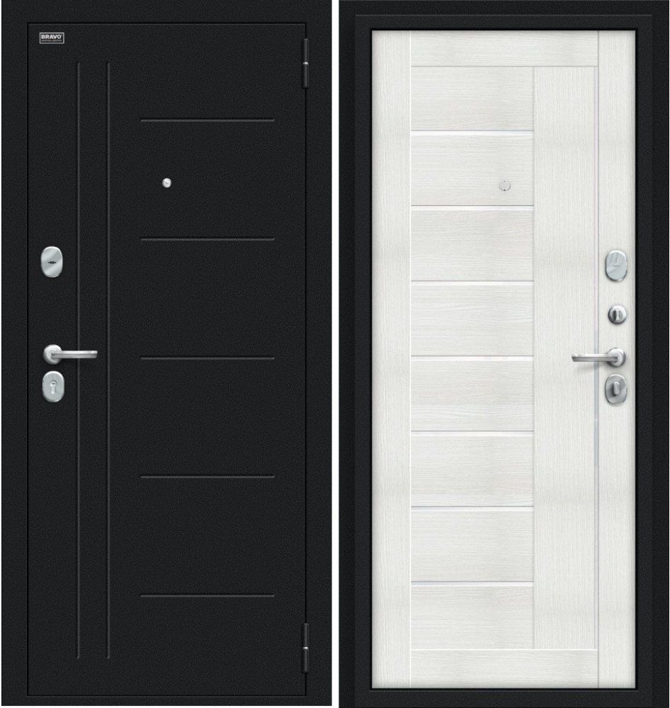 Надежная входная Дверь Браво Проф Букле черное/Bianco Veralinga премиум класса по цене 35 054 руб. Большая толщина стали защитит от проникновения в ваш дом, квартиру или коттедж. Используется очень качественная фурнитура: замки, цилиндры, ручки, защелки. Покрытие и отделка двери изготовлено под внимательным контролем производителя. Дверь имеет долгий срок службы и гарантию.