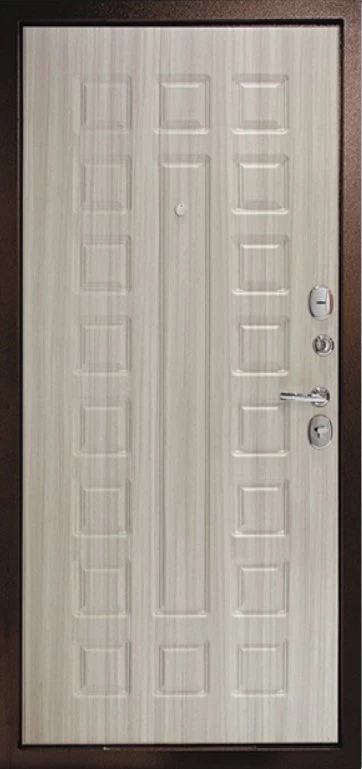 Надежная входная Дверь Рубикон 1 Медь Сандал белый премиум класса по цене 34 924 руб. Большая толщина стали защитит от проникновения в ваш дом, квартиру или коттедж. Используется очень качественная фурнитура: замки, цилиндры, ручки, защелки. Покрытие и отделка двери изготовлено под внимательным контролем производителя. Дверь имеет долгий срок службы и гарантию.
